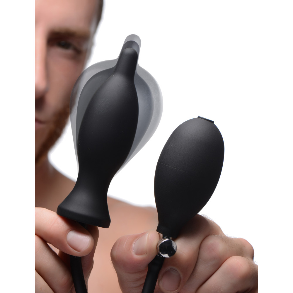 Experience the eroticism of expansion in your ass! This inflatable butt plug starts out small with a tapered tip, making it great for those who are newer to anal play, or who simply prefer a slim insertion. Give the hand bulb 1 or 2 squeezes for a more firm initial penetration. Once you are comfortably plugged to the base, give the bulb a few more pumps to discover the pried-open sensation inside your anus. The plug can inflate up to 2.5 inches if you can handle that much! Take your time discovering your inner limits. When you have reached your maximum, an easy release valve will provide instant relief. This anal accessory is made of phthalate-free silicone, which is body-safe but not compatible with silicone lubricants. Clean after use with a mild soap or toy cleaner.