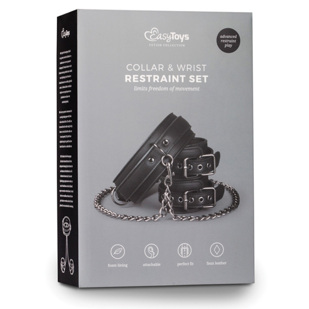You are in control when your sub is wearing this fantastic bondage set! It consists of a collar with hand cuffs that can easily be detached from each other using the clip fasteners. The toys are made of sturdy faux leather lined with foam, which makes them durable and comfortable to wear. The collar is adjustable from 45 to 58cm and the cuffs are adjustable from 11 to 28cm. The chain has a length of 40cm. Combine this special set with other toys, such as ankle cuffs, ball gags, paddles and nipple clamps for an extra exci