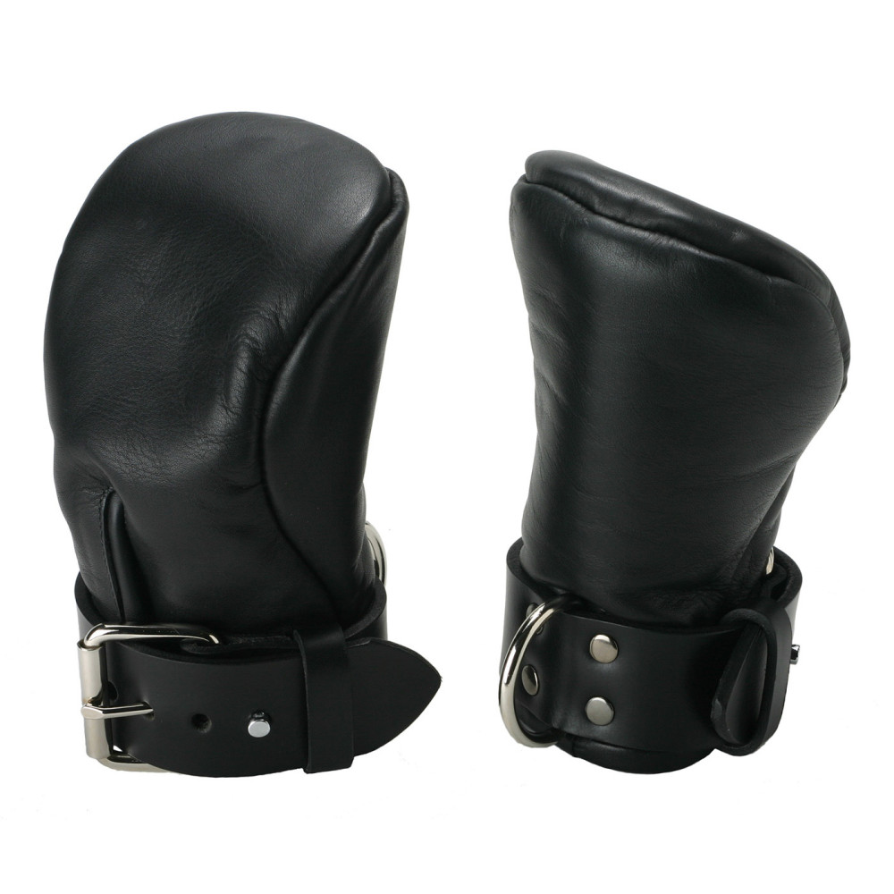 Keep their busy little hands out of the way with these Strict Leather Deluxe Padded Fist Mitts. Made from soft garment leather, they will keep your partners hands comfortable while unable to use them. Each mitt is secured by a 1.5 inch leather strap with buckle. Another great feature is the D-Ring on each of these mitts, giving you the chance to attach their hands to any object if desired! Designed for a tight fit, this design forces the wearer to keep the hand in a fist. Removing the ability to open the hand is a higher level of restrictiveness and can be appreciated by serious bondage lovers.