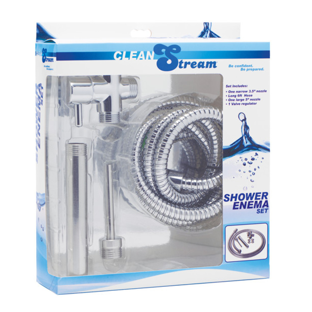 The CleanStream Shower Enema System has been improved! This enema kit now includes a free narrow nozzle. New, longer 6 foot hose makes your enema time much more convenient. You use the shower knob to regulate the force of water through the hose into their ass. This allows for a more gradual and comfortable enema experience. This is a very neat enema system. Its douche/enema nozzle is outfitted for use as a shower attachment. The Shower Enema Kit comes with two nozzles, one is 5" and the other is 3.5". It also c
