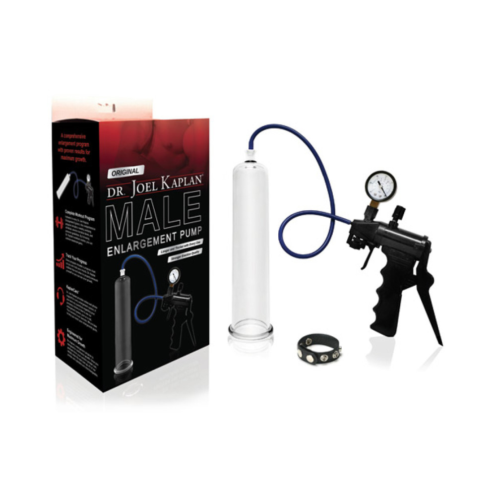 Lengthen and thicken your erect penis! The Original Male Enlargement Pump System is FDA approved. Use this pump to reverse shrinkage due to age, help correct mild curvature, resolve premature ejaculation, and build confidence and self esteem. Included is a hand trigger vacuum pump, a hand made expansive cylinder and connector hose, erection enhancing bands, a penis leather strap, and lubricant. The hand trigger vacuum pump is a hand-operated, light weight, heavy duty vacuum pump with a pressure release valve at your fing