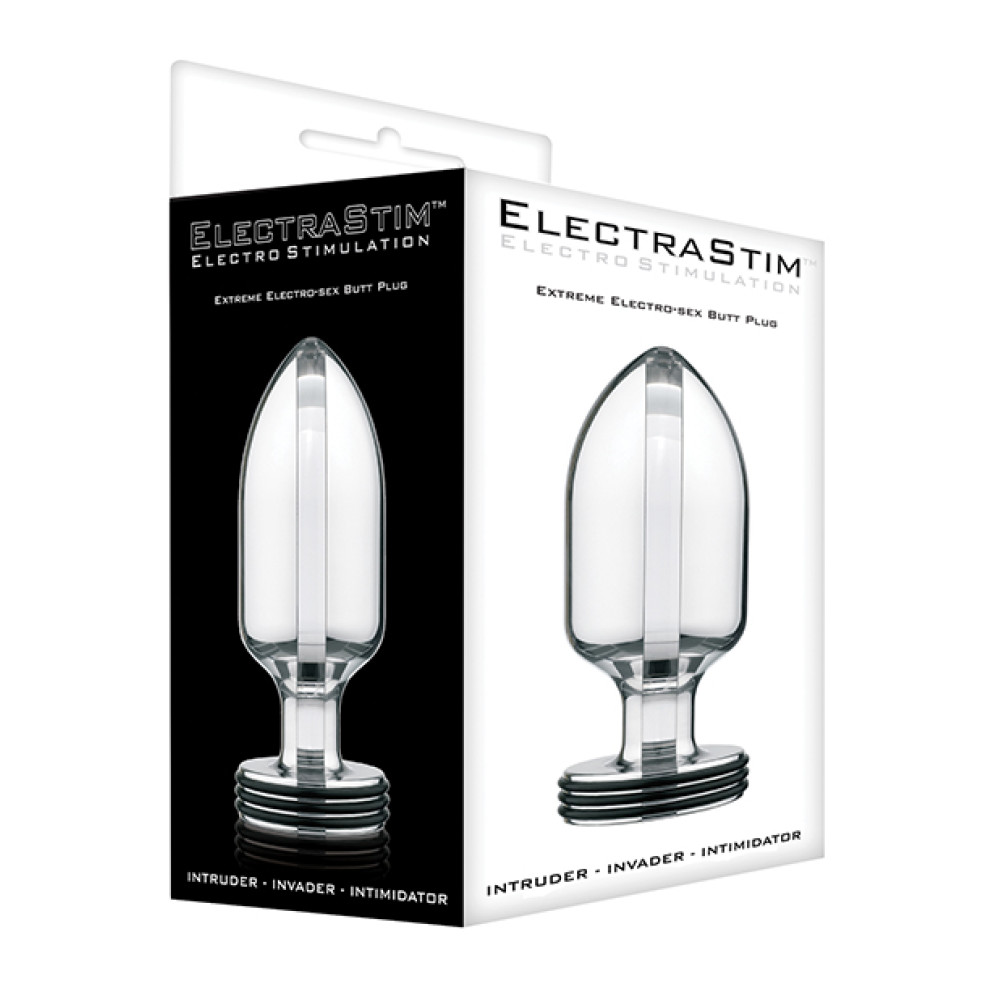 Plug the Intruder Extreme Electro Butt Plug into an ElectraStim stimulator and you'll enjoy intensified stimulation across a wide surface area. The cool metal enlivens with electrical signals that cause your body to tingle, contract and pulsate in time with the selected pattern setting. Intruder is the smallest of our extreme range of metal butt plugs but is still recommended for experienced players.