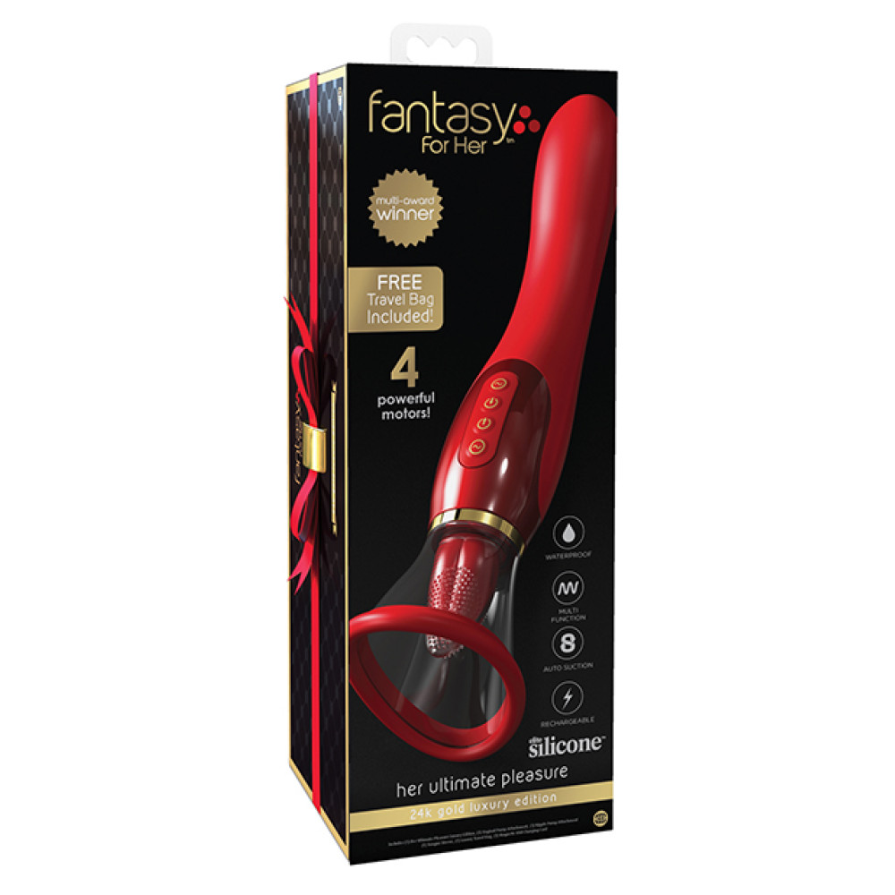 Her Ultimate Pleasure 24K Gold Edition features everything you love about the original while it struts a limited rich red color, stunning 24K gold plated accent, and includes a deluxe travel bag, all contained inside a luxury gift box perfect for any occasion.