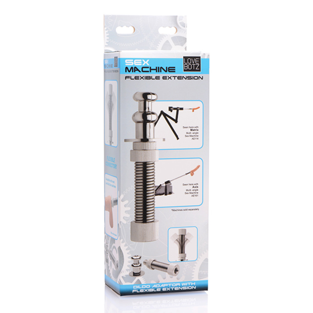 Compatible with most LoveBotz sex machines, this spring extender adds 3.5 inches of reach to your sex machine, while giving it realistic flexibility with every thrust. Providing extra torsion, this extension piece is attached to a Vacuum-Lock, Vacuum-Grip connector that enables you to easily interchange hundreds of differently-shaped vaginal and anal dildos. An orientation nut controls the direction of the attachment for versatility.