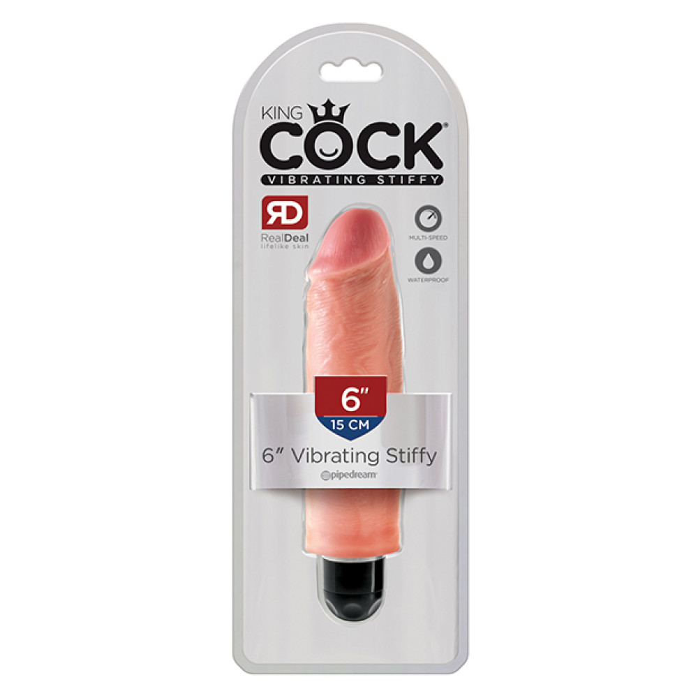 When you're looking for a realistic vibe that's always ready for action, the King Cock Vibrating Stiffy is the perfect choice for maximum satisfaction! This lifelike dildo is made in America and features a powerful multispeed vibrator that delivers mind-blowing thrills. It's phthalate-free, body-safe, and feels even better than the real thing! Try it in the shower or spa and turn bath time into pleasure time. Material: PVC Batteries: 1 AA- not included Length: 7 in. - ( 18 cm ) Width: 1.65 in. - ( 42 mm )