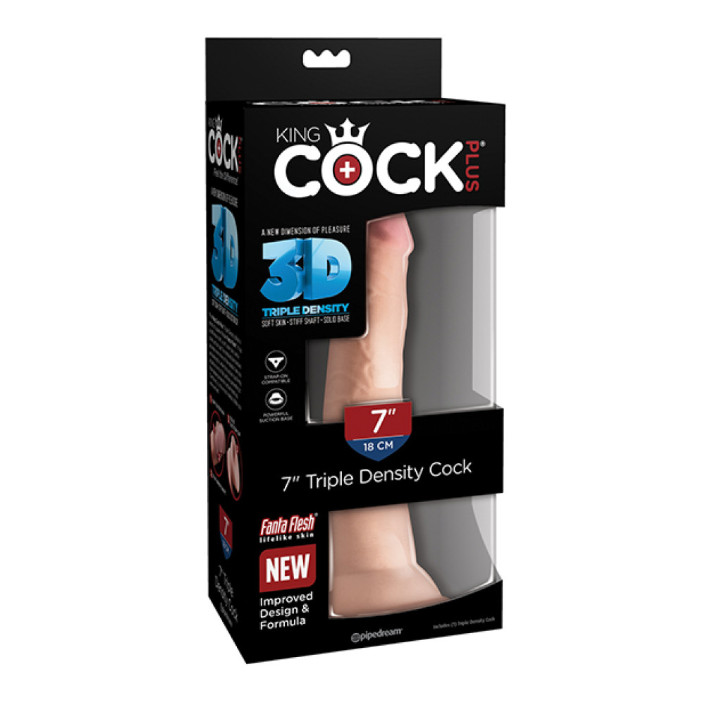 The King Cock® Plus 7" Triple Density Cock is made of new and improved Fanta Flesh® material, making it stiff on the inside and soft on the outside. The lifelike outer skin is smooth to the touch, while the inner shaft is stiff and erect like an actual penis, making your pleasure experience as true to real life as possible.