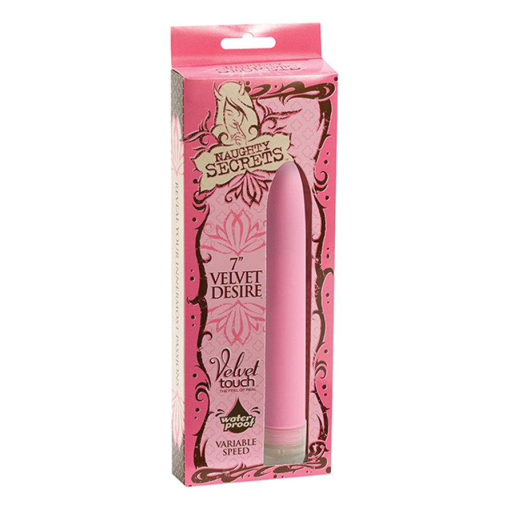 Reveal your innermost passions! There is nothing like the feel of real, especially in the form of the perfectly sized, perfectly contoured pleasure wand known as the Velvet Desire. Covered in Velvet Touch, the most luxuriant material known to woman, this waterproof 7" x 1" beauty also has variable speed control so the motion accelerates with your passion. Requires two AA size batteries, not included. Never has seven inches gone to such lengths to please you!