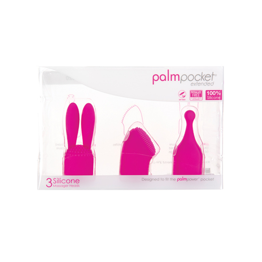 Expand your world of pleasure with the PalmPocket Extended silicone attachments. This set of 3 silicone heads easily attaches to the PalmPower Pocket, allowing you to achieve different, breathtaking sensations every time!