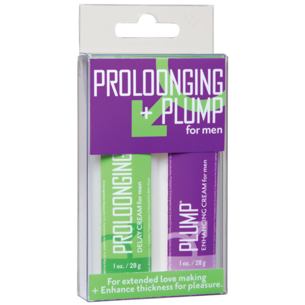 Get more banging for your buck with this travel-friendly sexual enhancement kit! Doc Johnson's Proloonging + Plump for Men features a 1 oz. tube of delay cream and 1 oz. tube of enhancing cream. The delay cream, "Proloonging", contains 7.5% Benzocaine which acts as a desensitizing agent that helps to extend love making sessions and prevent premature ejaculation; while the size enhancing cream, "Plump", increases blood flow to the penis for a thicker, larger look and feel. Both formulas a