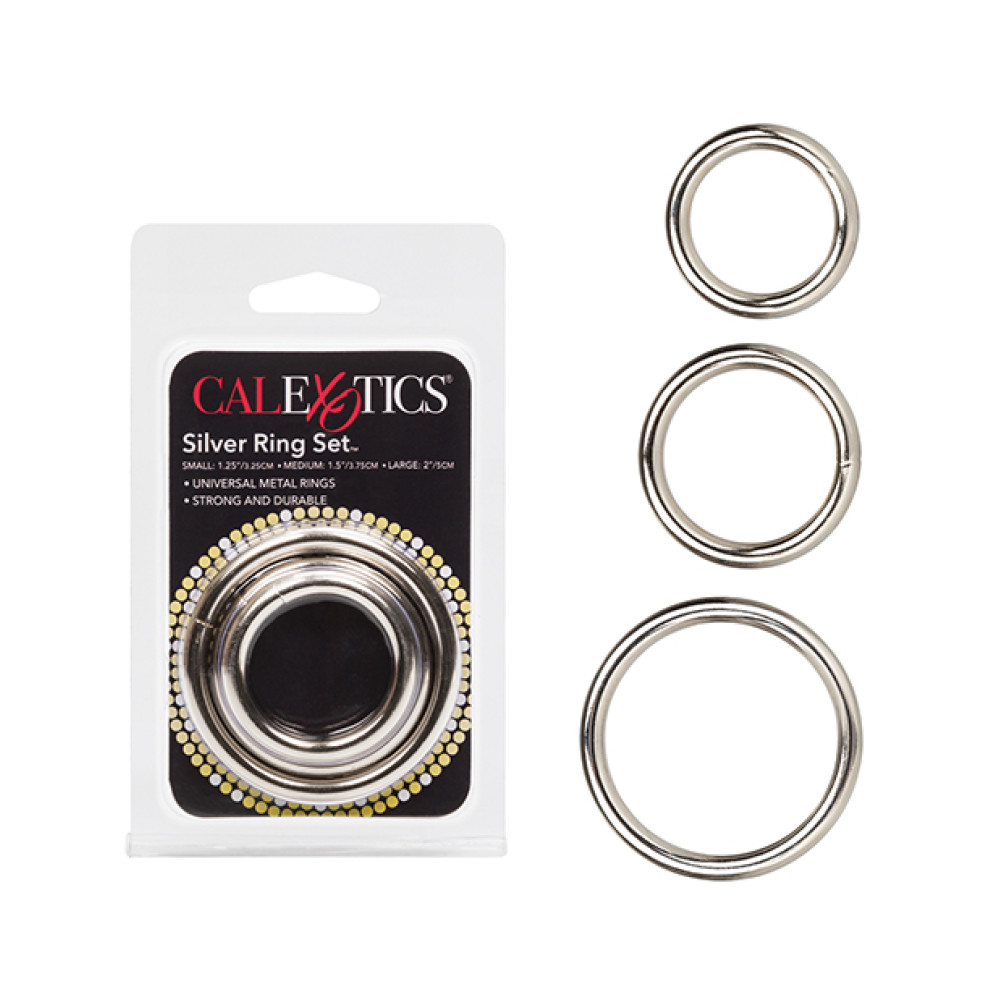 Intensify your orgasmic experiences with the Silver Ring 3 Piece Set. The comprehensive set of sensuous accessories includes 3 different sizes of metal ring enhancers, for heightened sensitivity and increased sensual pleasure. Slip on a medium, large or extra-large sized adornment ring and enjoy peak performance every time.