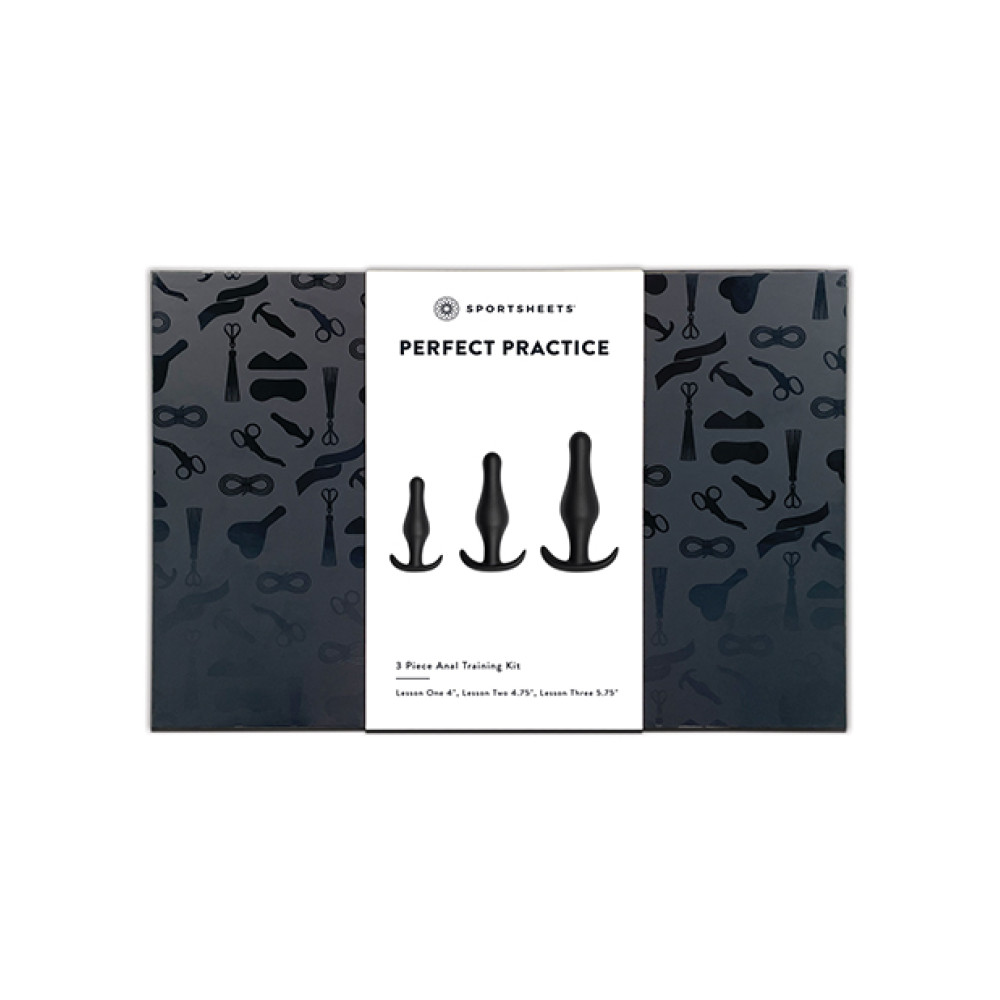Practice really does make perfect with the Perfect Practice anal training kit. Start with Lesson One, a tapered 4" plug with convenient handles for easy insertion and removal. Designed with soft and flexible silicone, these plugs are sure to heat things up during sexy solo sessions or partnered play. Once you've mastered the first plug, graduate to Lesson Two, a 4.75" plug, and then Lesson Three, a 5.75" plug for even more penetration pleasure. Before you know it, you'll graduate from fantasy to