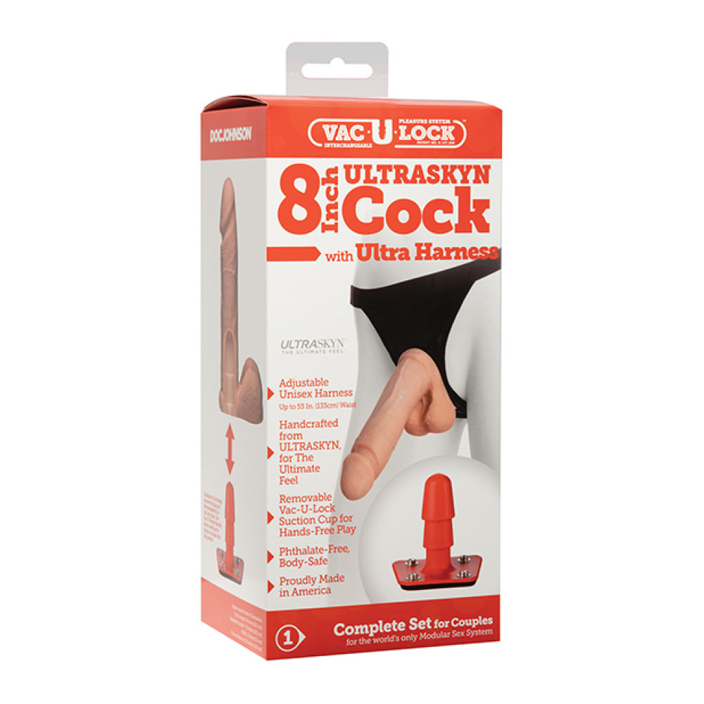 Experience sex from a whole different angle with a fully adjustable, comfortable, strap on harness. Try all kinds of positions for a huge variety of sexual pleasures and experiences. This advanced sex system features a plug attachment to securely hold the included 8" lifelike UR3 cock, and is part of the Vac-U-Lock modular system for use with other accessories. Wear the harness and have the power to please with an exciting set of equipment!