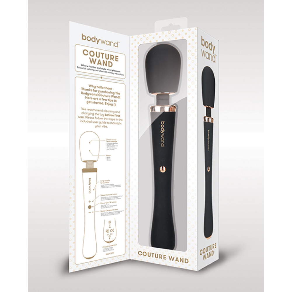 Where fashion and style meet pleasure. The Couture Wand is a powerful, splashproof vibe with rumbly vibrations. The classic wand design allows for deep tissue all-over massage, and the large head and flexible neck are perfect for deep-tissue massage. Five modes of vibration and ten speeds make this a very versatile wand. Crafted from velvety soft silicone, the Couture Wand is USB rechargeable and 100% splashproof for shower friendly massage.